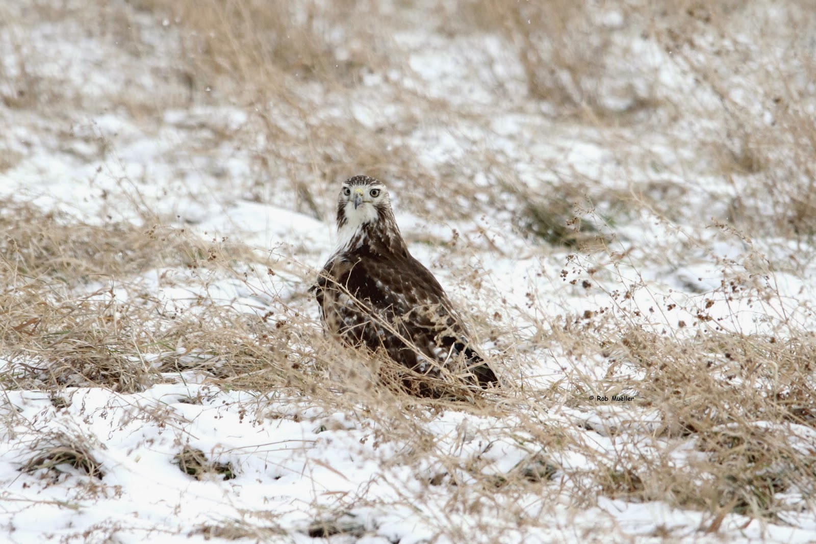The bird was roadside up a ways, and being large and dark, snow blowing around, my friend for a brief moment thought it was a wild Turkey. I did too and then it clicked... it's that Hawk.