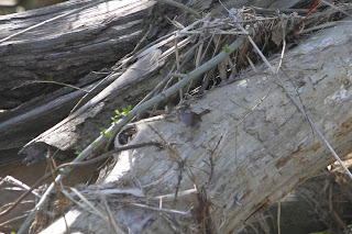 This guy wasn't as freaked out upon release as the first but you can see the display of the head feathers that he isn't relaxed. The feathers went up, they went down, they went back up and then down again. He made a funny grunting kind of call in the near 10 minutes he sat on this branch. That's another thing for me with releases; I tend to hang out in the spot until they fly off.