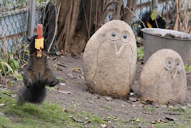 Not everyone who feeds the birds likes the Squirrels. What can ya do about it? Don't take the title of this blog in the wrong sense, as in "beating" is not a physical act at all... just they aren't going anywhere. The backyard is their home, ours is inside. So instead of going crazy trying to keep them out of your feeders; might as well enjoy their antics and set things up out back for them to eat and play with, and be entertained in the process.